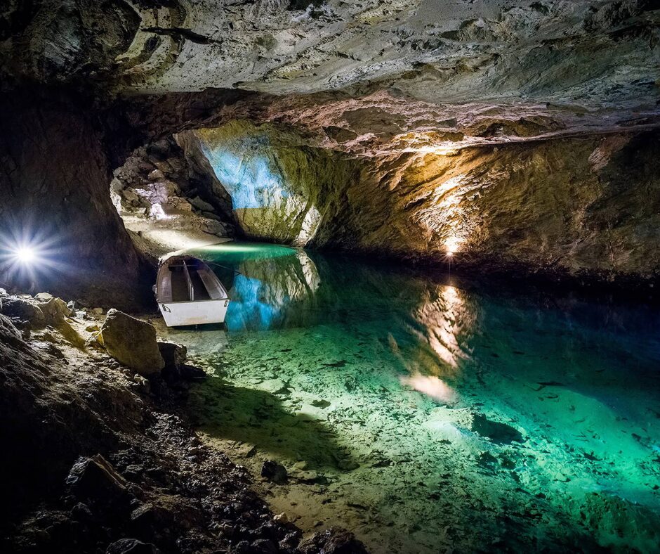 L’avventura prosegue nel silenzio magico del Lago di Saint-Léonard, il più grande lago sotterraneo d’Europa, navigabile tra acque cristalline e grotte incantate.
